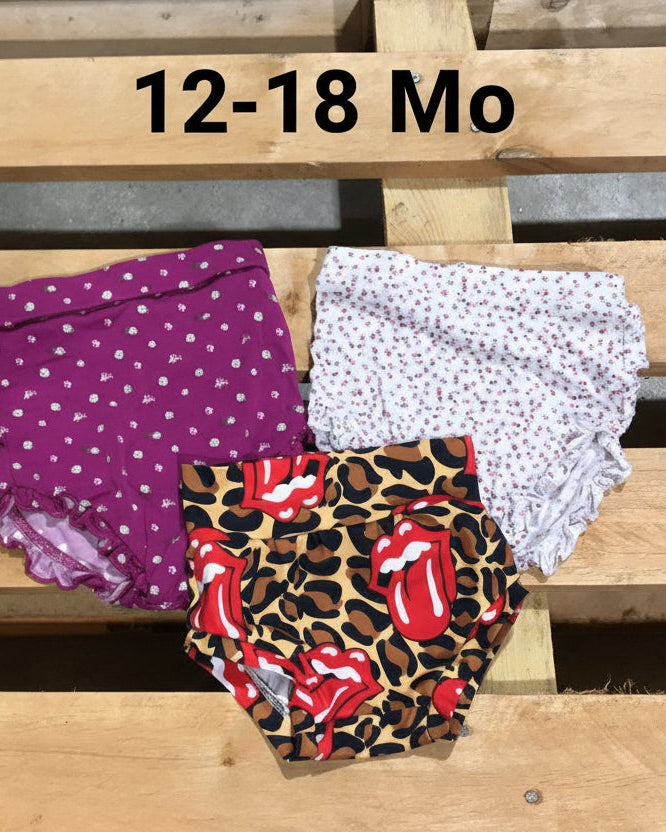 Lips  Bottom, White Floral Bloomer, Purple Floral Bloomer