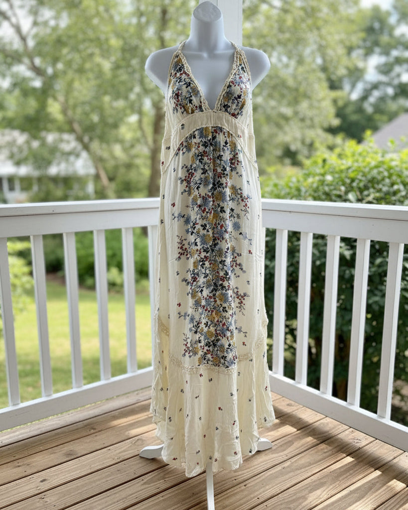"KC" Cream Floral V-neck Midi Dress Free People-Sm