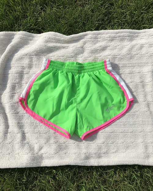 "KC" Green Jogging Shorts With Pink Trim: Small