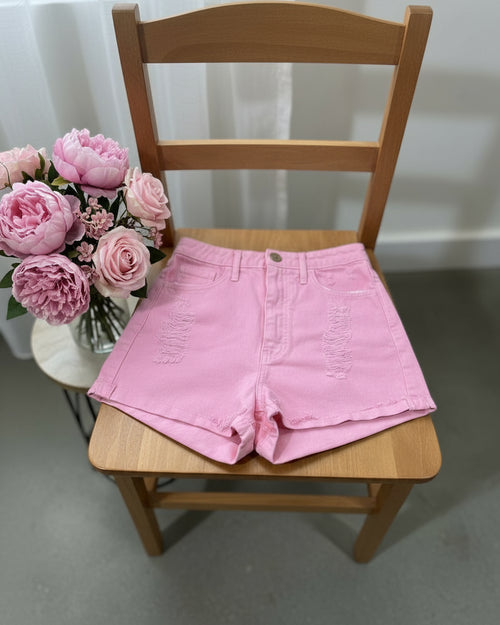 "KC" Mumu Barbie Distressed Pink Denim Shorts: 25