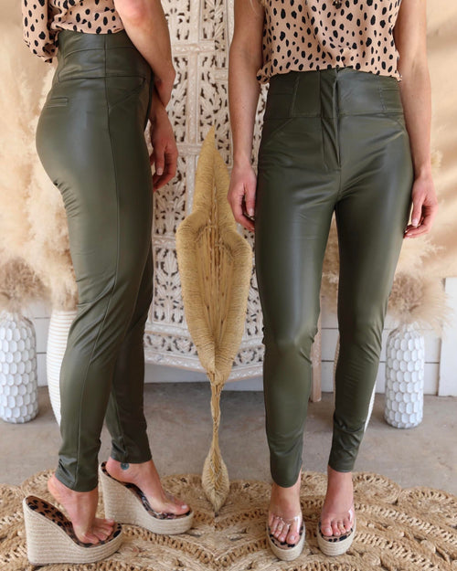 "KC" Black Faux Leather Skinny Jeans: 3