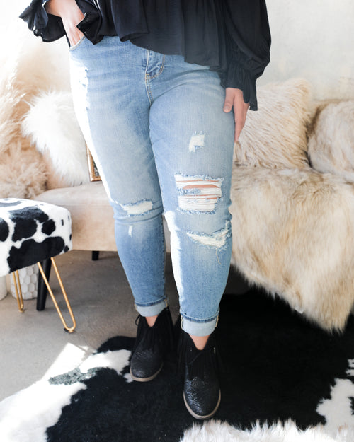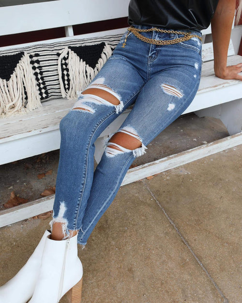 "KC" Distressed Button Fly Skinny Jeans: 25