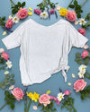 "KC" Cut Neck Cut Hem Heathered Gray Tie Crop Top Tee: Small
