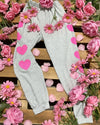 "KC" Heathered Gray Pink Heart Joggers: Small