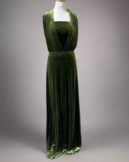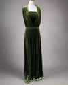 "KC" Olive 2 Piece Shiny Velvet Maxi Dress: Small